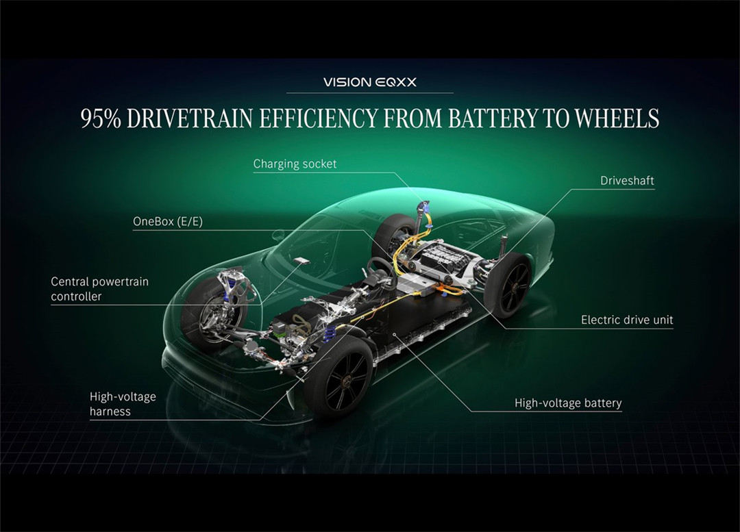 VISION EQXX概念车的设计理念是奔驰的“新豪华主义”和“感性·纯粹”。新车除了拥有全新的造型设计外,还着重提高了传动系统效率、电池能量密度、空气动力学的表现。