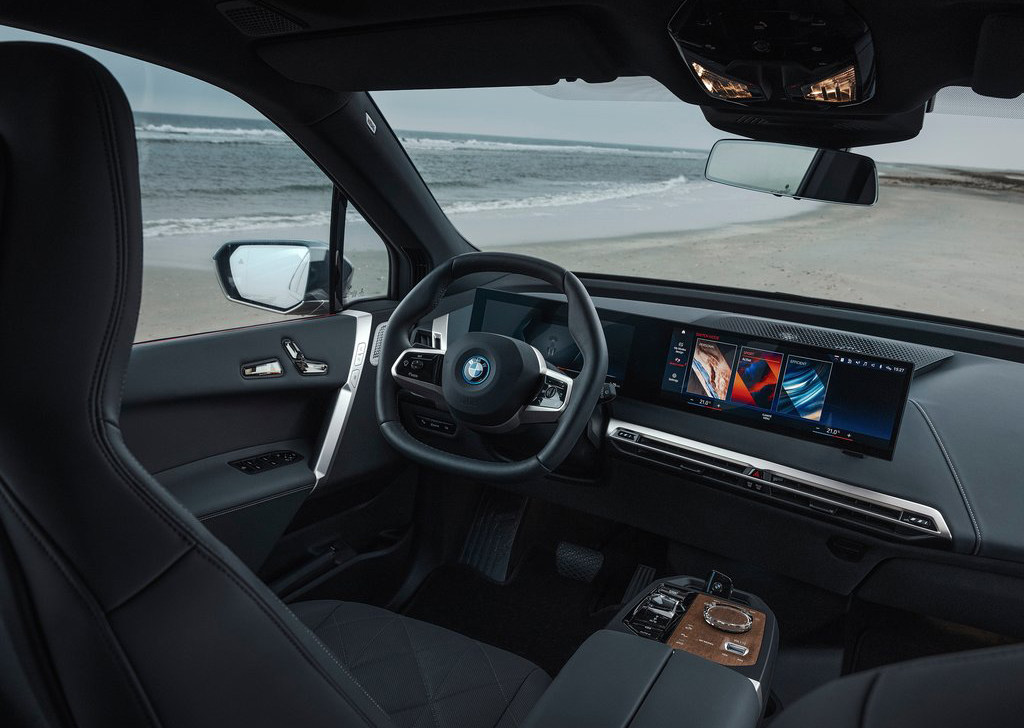 内饰设计和普通版iX保持一致,采用曲面双联屏的设计、异形多功能方向盘、电子档杆和水晶控制旋钮,处处凸显出极简的设计理念。