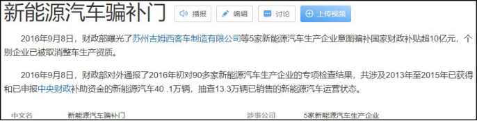 新能源汽车补贴的初衷,是带动中国新能源汽车产业发展,通俗点说是弯道超车、普及新能源车。虽然2016年曾曝光过新能源汽车骗补门,几家车企恶意骗补超过10亿元。
