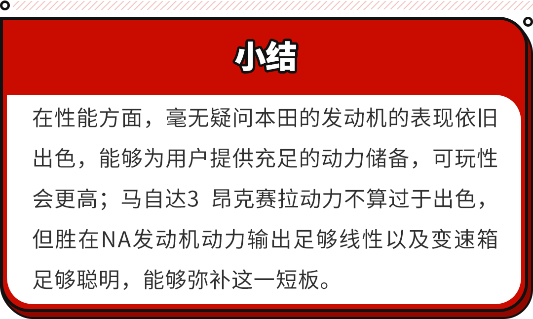 毕竟是NA机器,在性能方面并不算过于突出,但胜在马自达的6AT变速箱足够聪明,能够获得一定的驾驶乐趣。