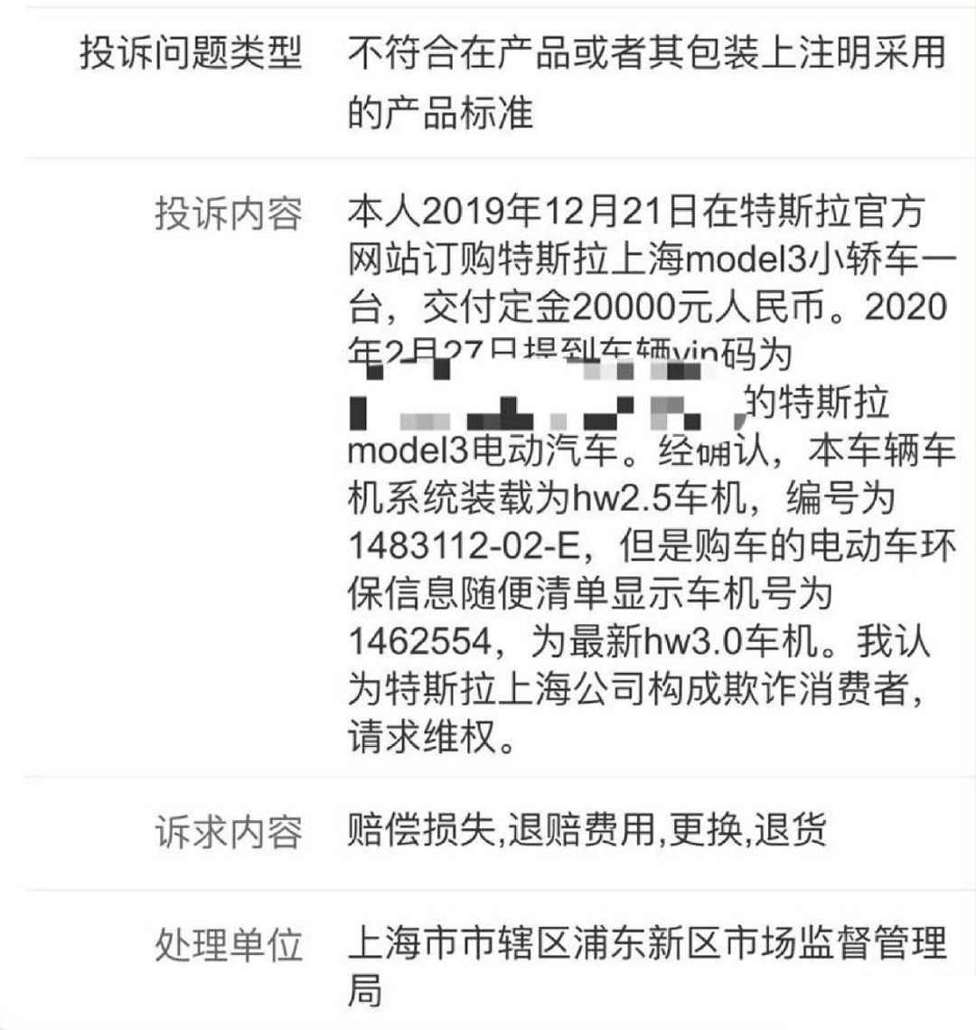 还有就是2020年发生的“减配门”,部分国产Model 3车主发现自己车辆配备的是自动驾驶硬件Hardware2.5版本,而不是环保信息随车清单中标注的Hardware3.0版本。