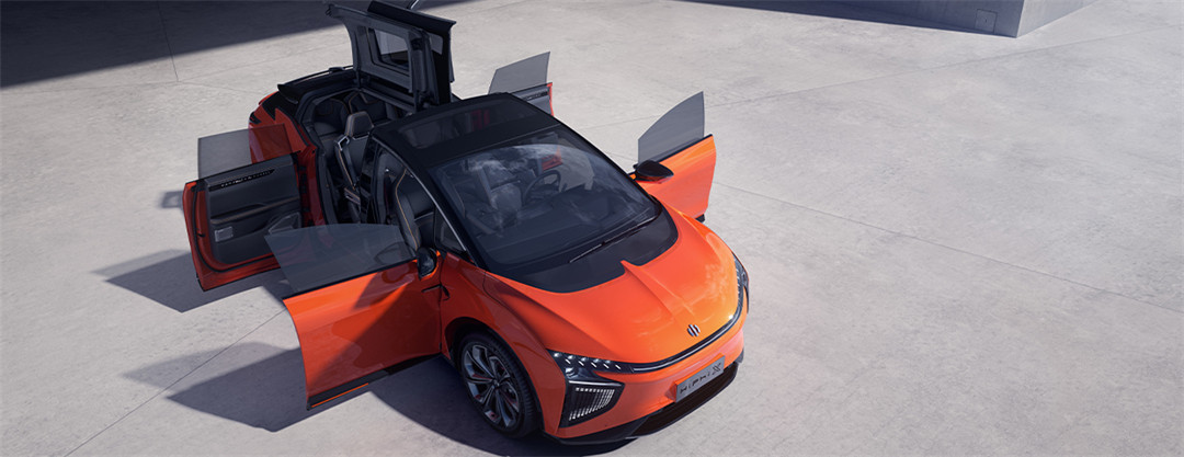 就比如高合汽车的HiPhi X,虽然外界的人对它的质疑声很高,说它是个无情的堆砌科技配置机器。也确实是,对开门+鸥翼门设计、科技化座舱、以及可显示文字信息的LED大灯等设计,十分华丽。