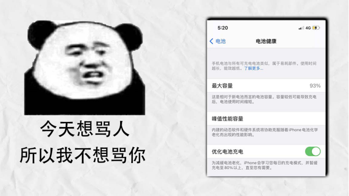 吓得我赶紧看了看自己一周岁的苹果,还好,最大容量剩93%,感觉还挺耐用。