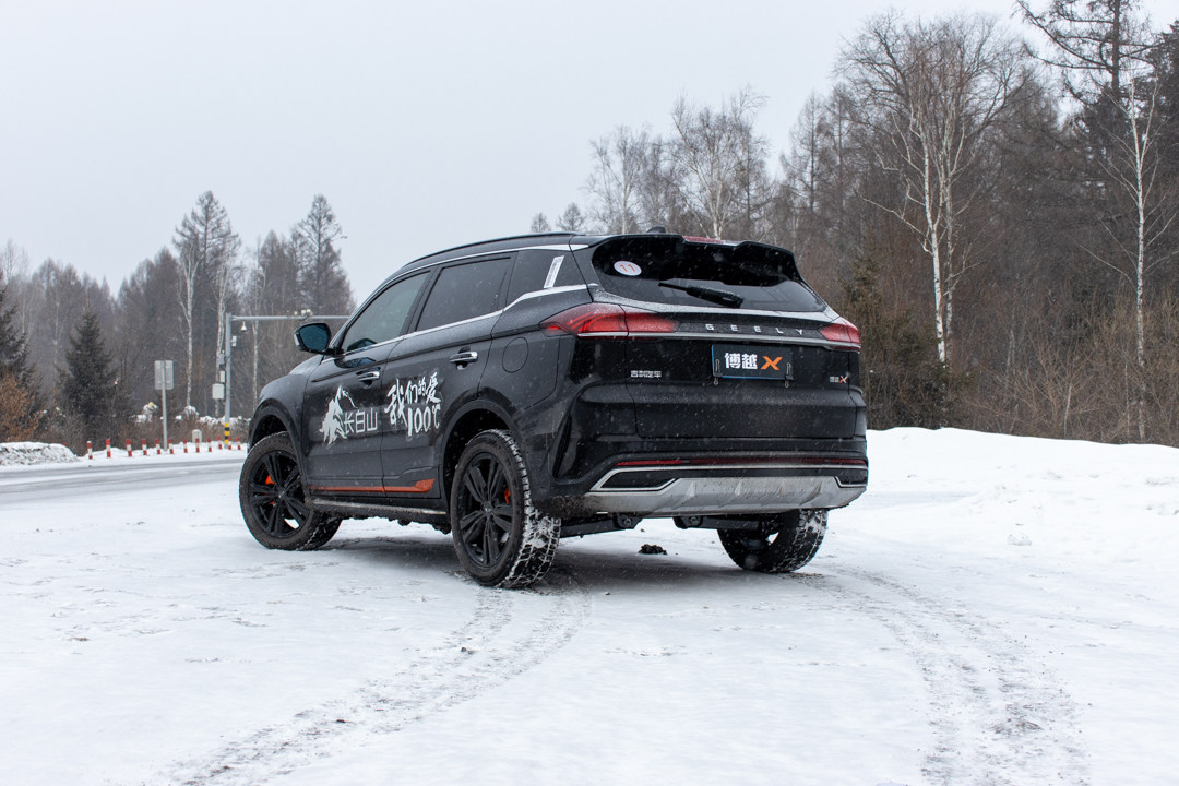 因为在雪地上所有车都按车辙前进,因此中间的积雪会比较高,这时博越X的高通过性就体现出其重要性了,这也是为什么现在SUV畅销的原因之一。
