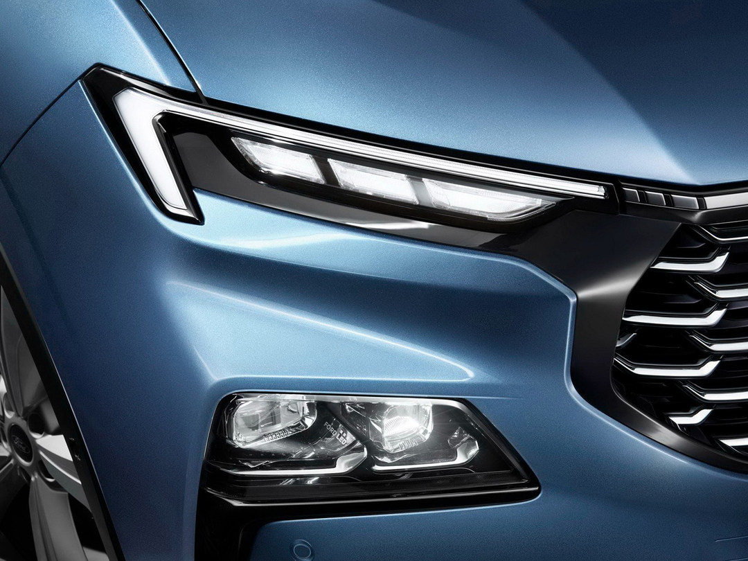 领睿的前脸使用上福特最新的家族风格,整体设计语言与福特EVOS近似,分体式的头灯加上类似锁子甲的中网,呈现出新时代福特车型的标志。