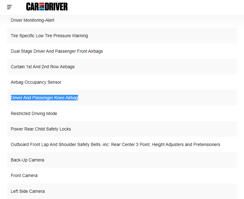 但同时又有另一个值得关注的点——无配备膝部安全气囊不会影响整车的安全性!这是真的吗?