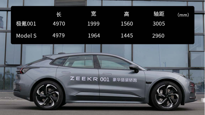 极氪001和Model 3算是竞争对手,但它的尺寸却直逼Model S...