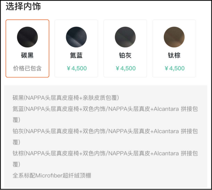 内饰能选的配色其实有三种,价格都一样。而标配的是碳黑,要是喜欢纯黑运动座舱氛围的,就用原配色好了。