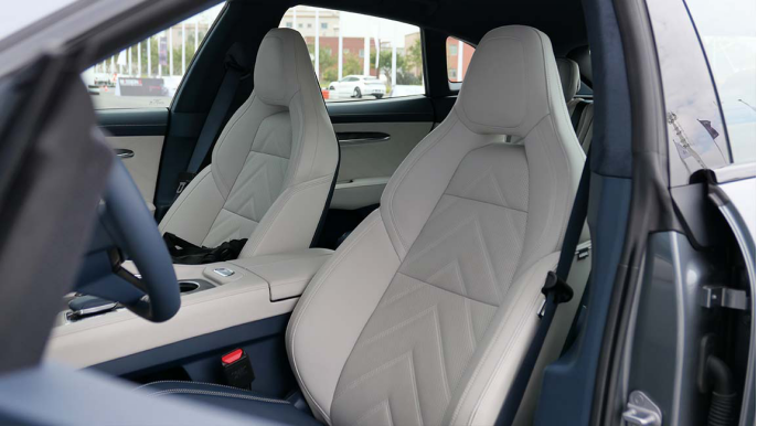 这台试驾车选装了氮蓝内饰,要加4500元,我觉得挺值的,白色看着更高级,另外还多了Alcantara材质。