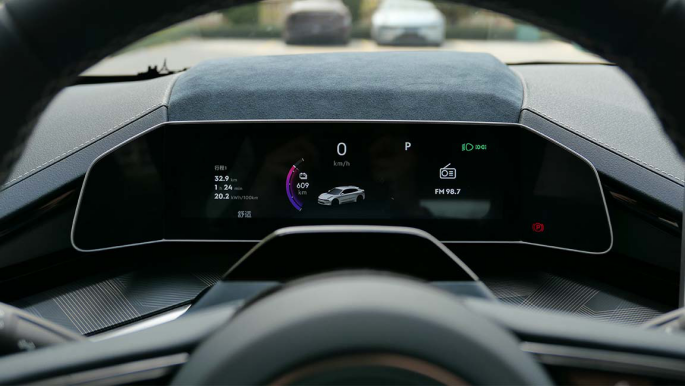 极氪001标配了8.8英寸的液晶仪表,显示内容如图。