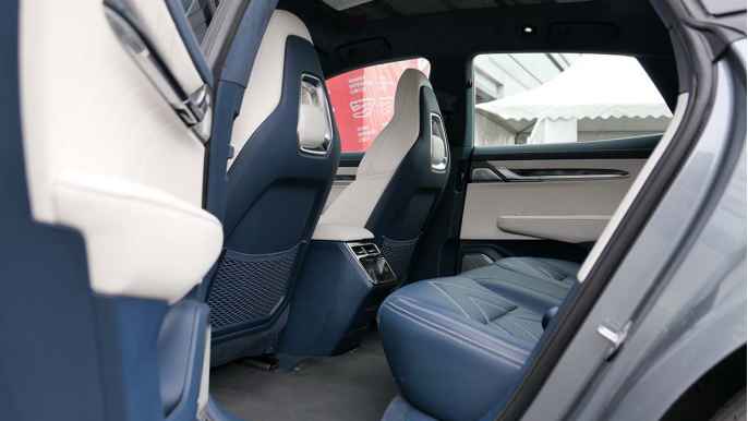 而且极氪001坐满5个人也不会太过拥挤,后排中间是能舒适坐人的,地台接近全平,不影响脚的摆放。