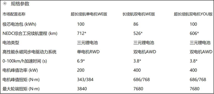 道路试驾换回了WE版单电机车型,背着100kWh的大电池包,使得零百加速只有6.9秒,但NEDC续航里程高达712km。
