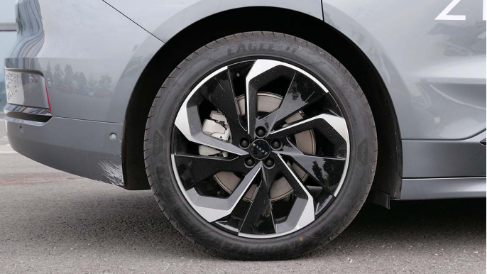 先体验的是WE版单电机车型,属于低配,不过极氪001的两款WE版已经标配了19寸大轮圈,轮胎规格为255/55 R19,顶配的YOU版则会升级到255/45 R21。