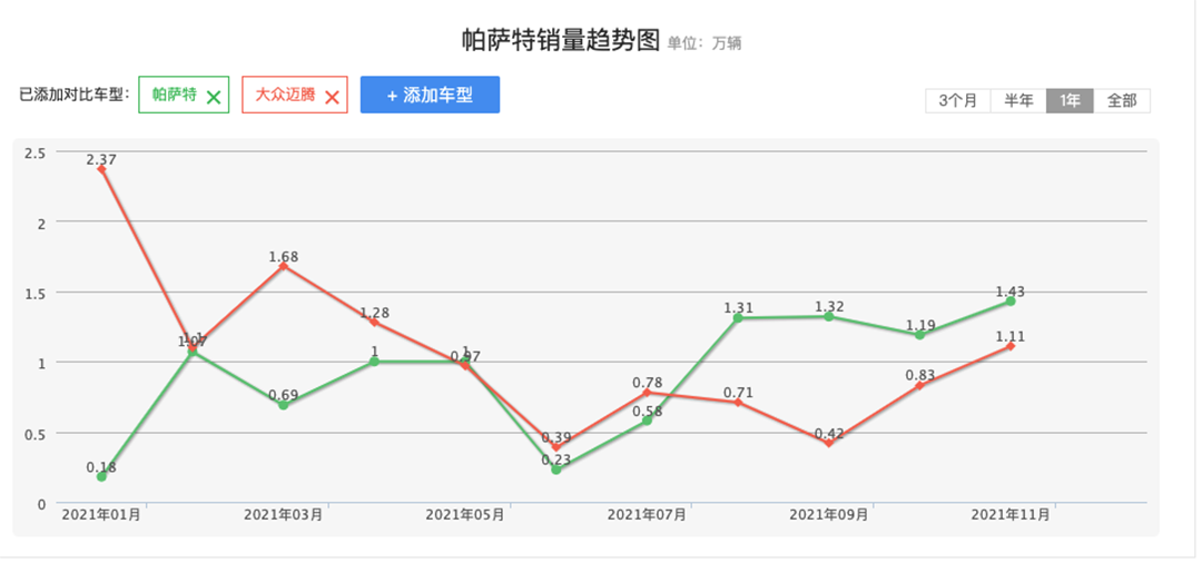 最后,帕萨特/迈腾在中国卖得如火如荼,为大众集团贡献了不少利润,单从2021年11月来看: