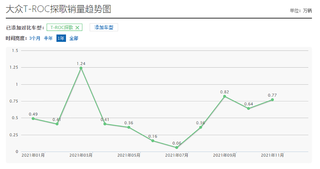 探歌定位精品紧凑型SUV,主要针对喜欢小巧尺寸且追求精品体验的用户。得益于目前较大的优惠力度,探歌平均销量在6000-7000辆左右,最高峰可达1.2万辆。