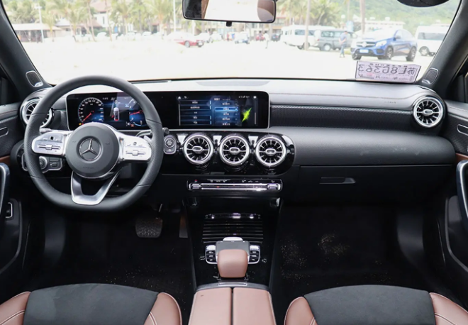 内饰也极具亮点。受限于成本控制,在用料上谈不上豪华,不过其视觉氛围却营造得十分高级,就奔驰家族最经典的双联一体大屏加上64色氛围灯,相信同级更甚是B级车中都找不出对手。