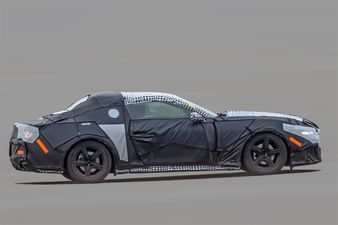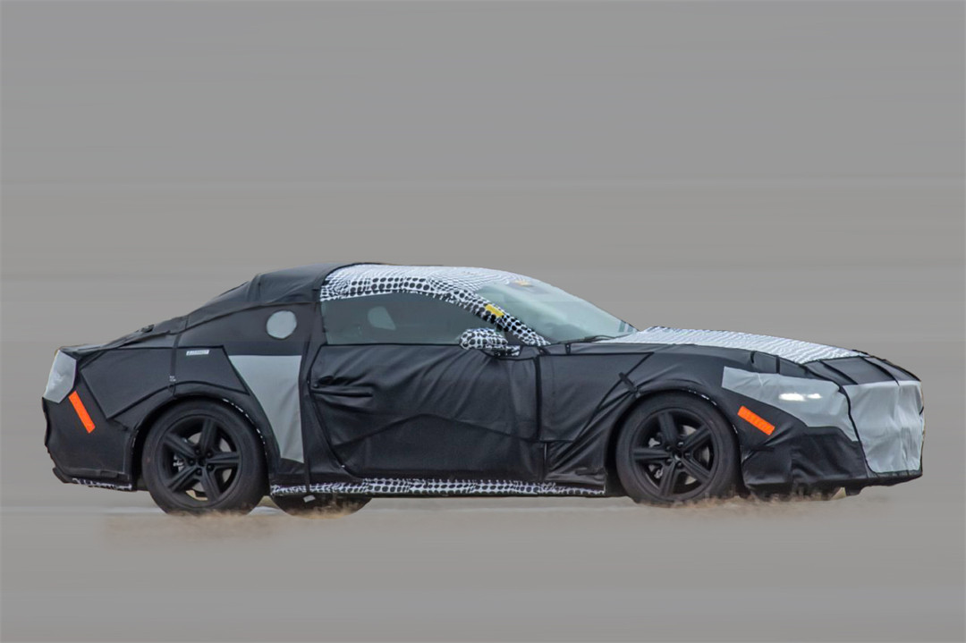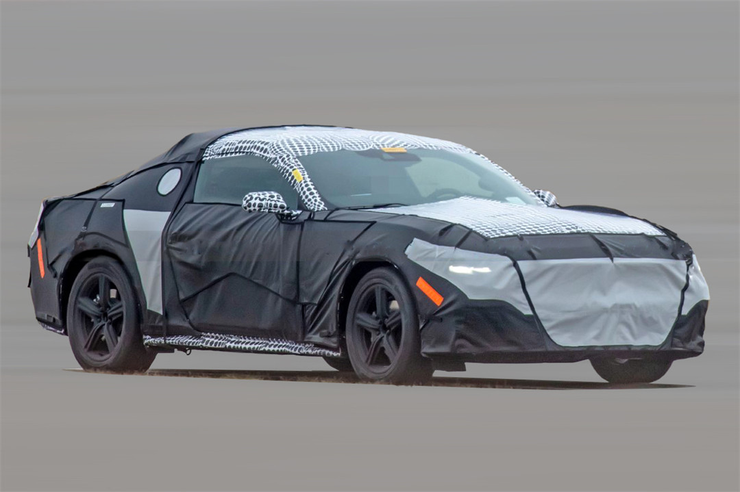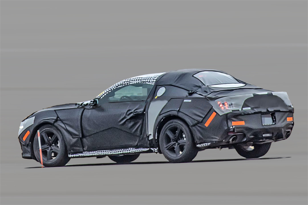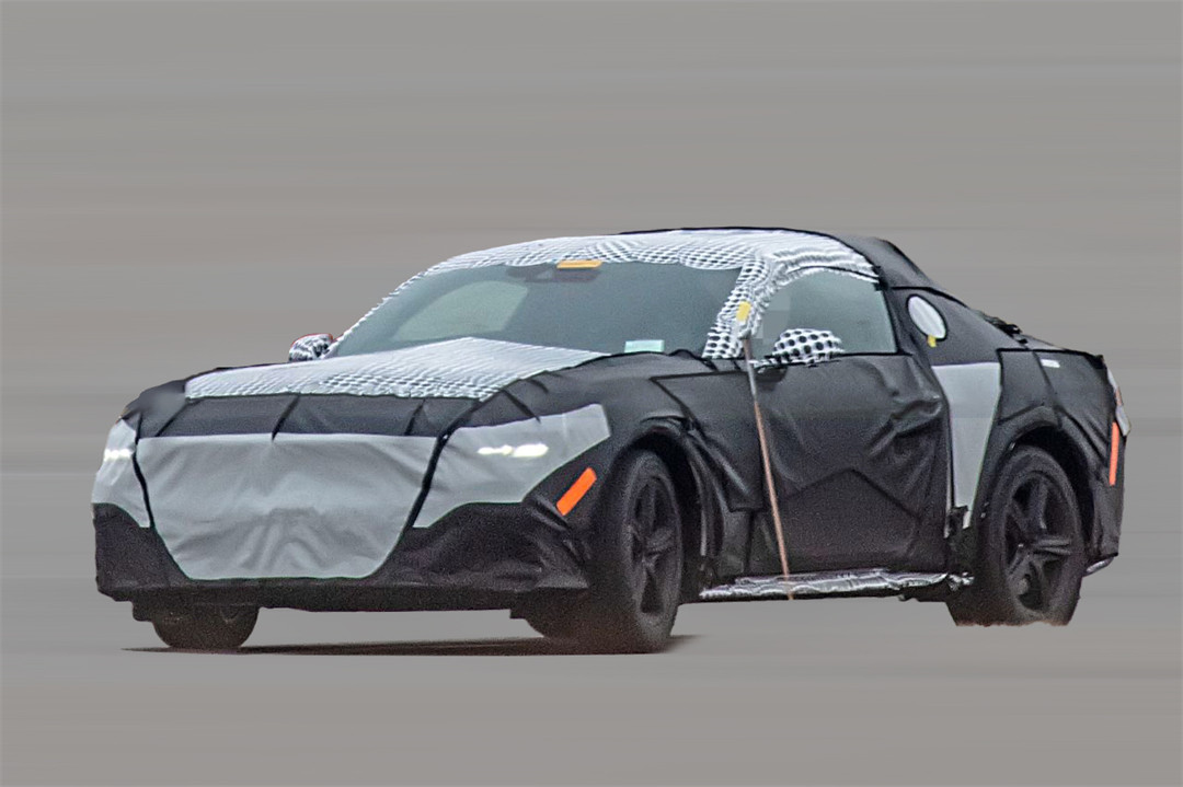 从曝光的谍照可以看到,测试车已经非常接近量产的状态。尽管被重度伪装,但全新福特Mustang整体延续了现款的经典造型,依旧是美式GT跑车的车身比例。