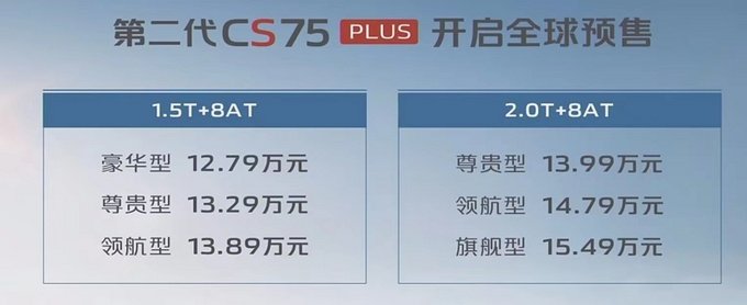 由于紧凑型SUV市场上各种有实力的车型不断加入,长安带来了第二代CS75 PLUS车型,希望能够争取更多的潜在客户。 而在近日,长安第二代CS75 PLUS也迎来了正式预售,预售价为12.79-15.49万元。