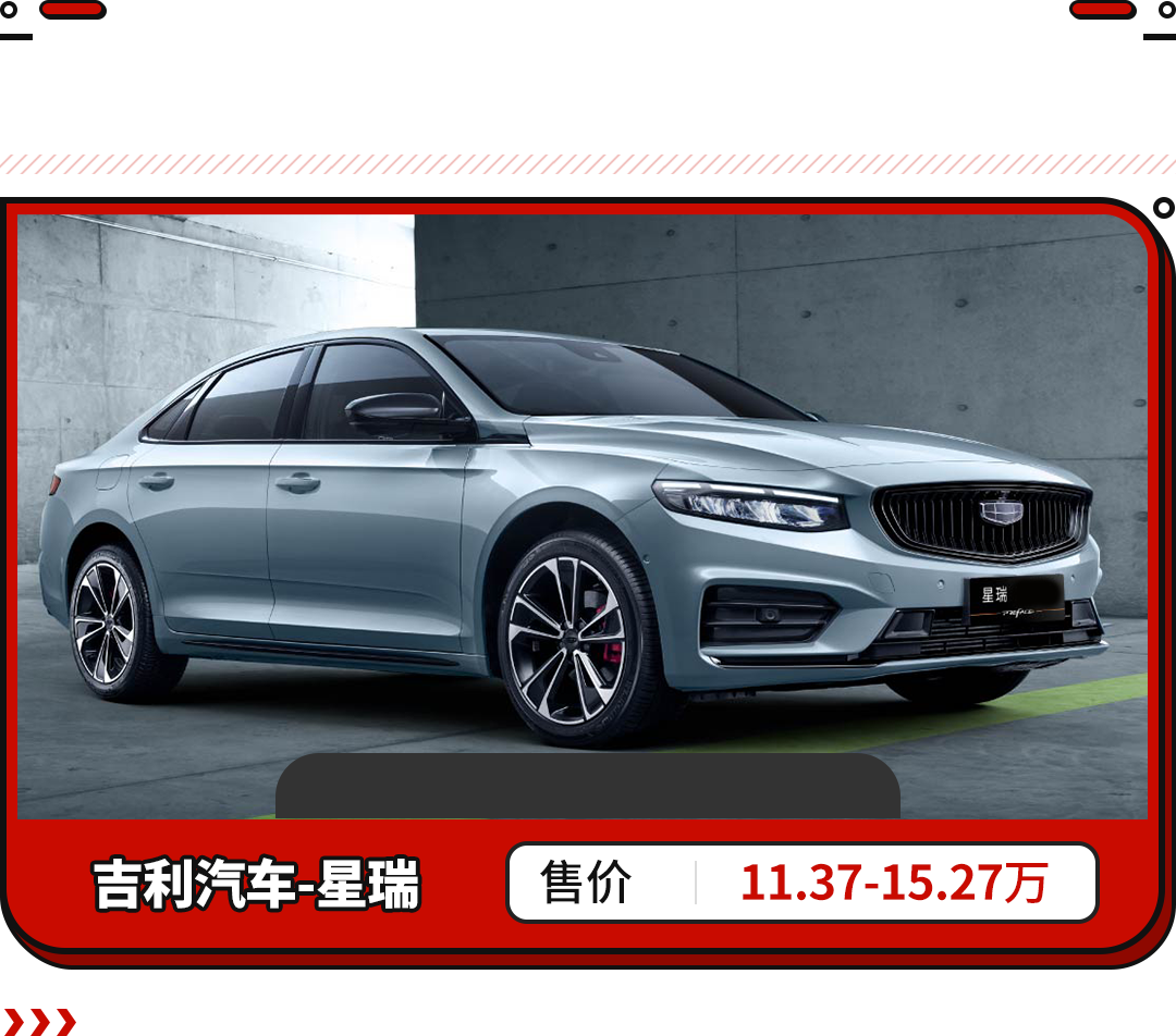 吉利星瑞除了能够给你足够的后排空间,配置高也是该车的一大亮点,全系标配LED日间行车灯、倒车影像、定速巡航等众多实用配置,延续了吉利轿车主打配置高的优良传统。