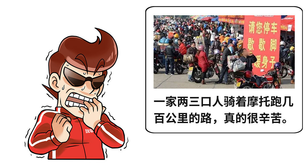 后来,摩托大军受到了媒体的关注,务工者成群结队地驾驶着摩托,冒着冷雨寒风、日夜兼程赶路的画面打动了无数人。
