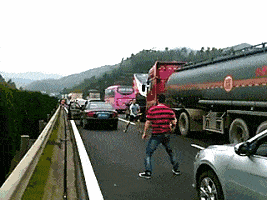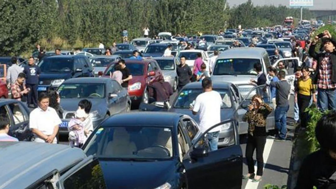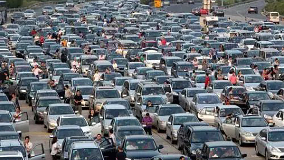 巨大的车流给公路带来了巨大的压力,密集的车阵中偶有擦碰发生,拥堵便不可避免地发生了。