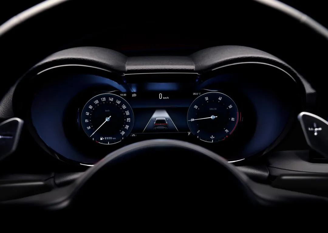 内饰部分,终于在阿尔法·罗密欧的车系上看到全液晶仪表盘的身影,加上悬浮式大尺寸中控屏幕,也向现如今流行的科技风看齐。而阿尔法·罗密欧经典的三幅式多功能运动方向盘,以及换挡拨片,运动的氛围依旧讨喜年轻人的钟爱。