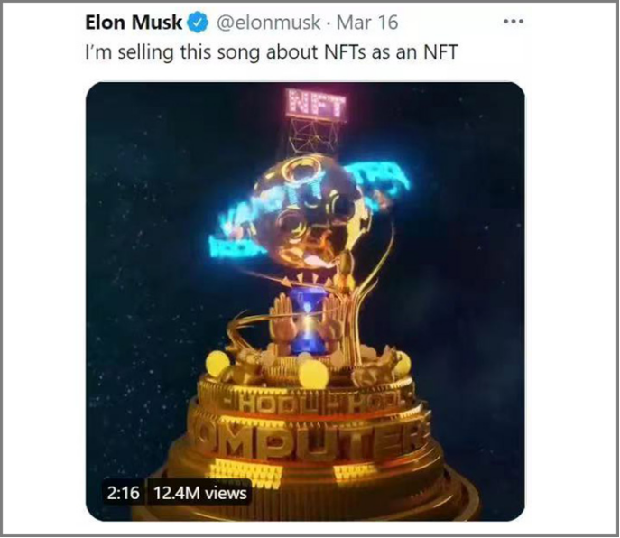 马斯克之前发了条推特:“我要把这首关于NFT的歌,弄成NFT卖掉”。于是这首歌在NFT交易网站上,很快被炒至数十万美元。