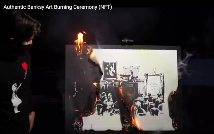 就像国外一个叫班克西的人,为了让这幅画的NFT数字版价格飙升,他索性把真实存在的原画烧掉了,从而让这幅画的NFT作品卖出了高于真实画的4倍价钱。