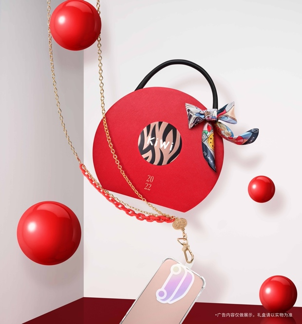对时髦精们来说,春节不论是出街访友,还是发圈“晒”货,都得有“时髦”味儿。KiWi Beauty Box采用时尚圆形手包设计,辅以经典中国红配色,提带上还“搭系”有KiWi特别款印花丝巾,可作为时髦男女的日常穿搭饰品使用。礼盒内部采用双层“美妆盒”设计,除了“盲盒式”坚果包装,还有两大“隐藏款”——虎年膨胀红包、虎年时髦挂链,惊喜连连,充满了对用户的美好祝福。