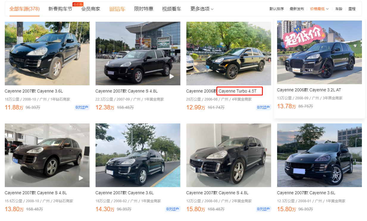 从目前二手车市场行情来看,作为保时捷旗下的顶级SUV——保时捷卡宴,最低能够以11.88万元的价格即可开回家。更夸张的是,多加万把块就能拿下保时捷卡宴Turbo这种配置几乎是到顶的车,这样的价格还买啥SR9(江湖人称保时泰[doge])。