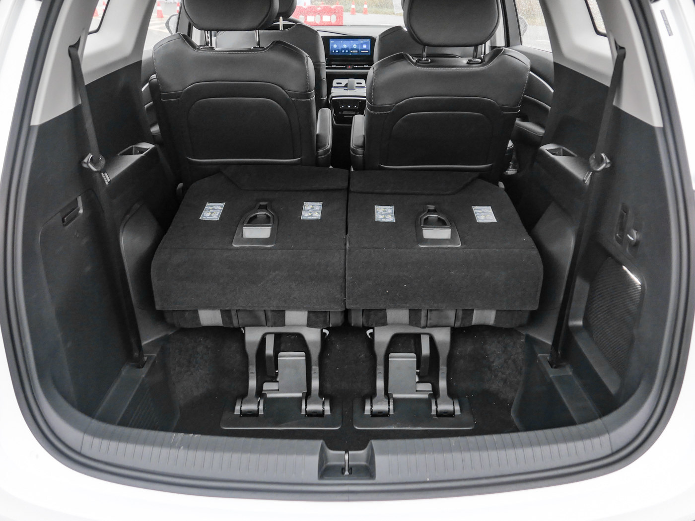 第二排调到合适位置后,第三排的腿部空间可以保证有三指的距离,不过坐垫偏低,乘坐姿势不算太舒适,而且满载时,后备箱的载物空间就没多少了。