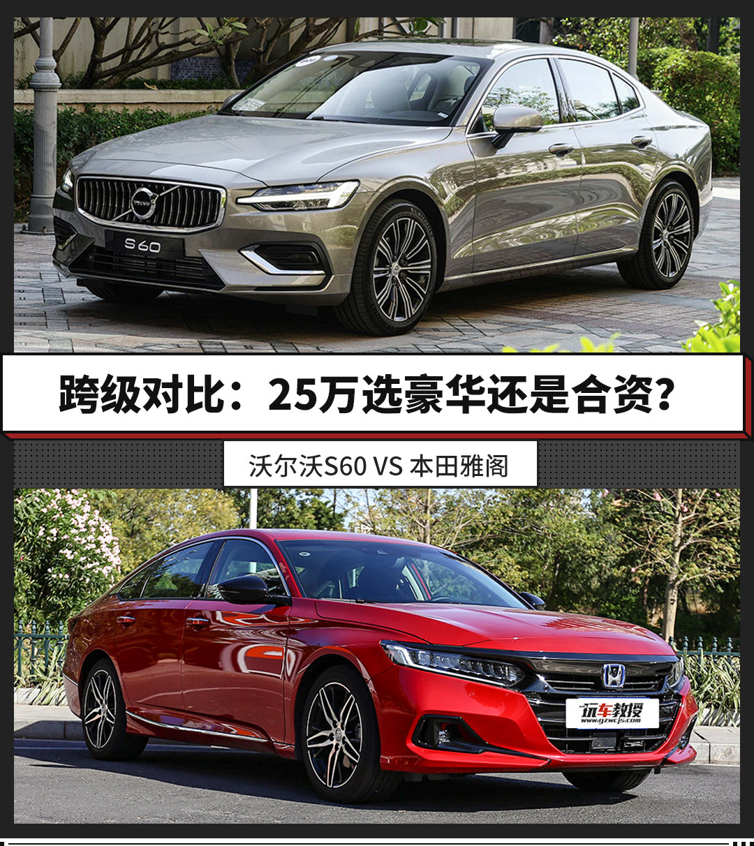 那么手握25万预算,可以选择合资品牌的本田雅阁,也可以选择豪华品牌的沃尔沃S60,教授下面就来一期跨级对比!