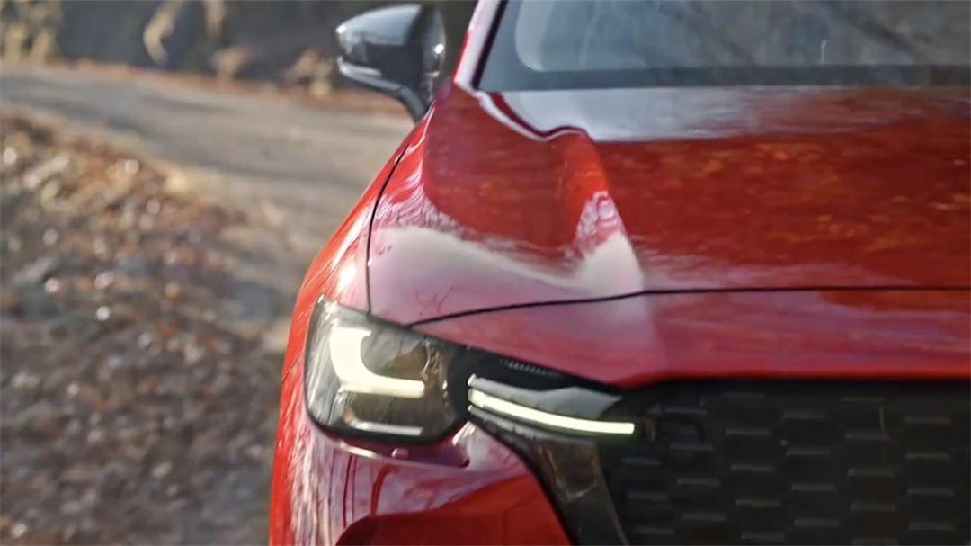 可以看到CX-60的大灯和保险杠造型相比在卖车型有了调整,LED日行灯镶嵌在中网的镀铬装饰里。