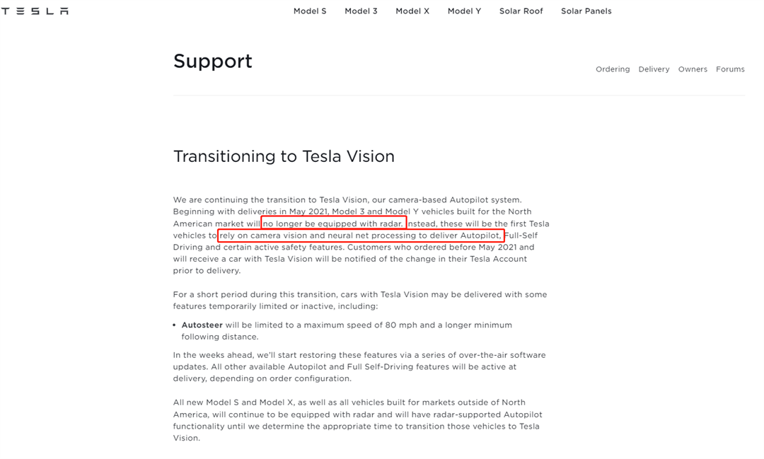 其实早在2021年5月之后下线的特斯拉Model 3/Y就已经不再为其配备雷达,转而由摄像头作为替代品,通过摄像头视觉和神经网络处理来实现全自动驾驶。在别人推崇激光雷达作为自动驾驶的最佳硬件搭配之时,特斯拉却反其道而行,确实在IIHS碰撞测试中因为它的改动而得到TSP+的成绩。