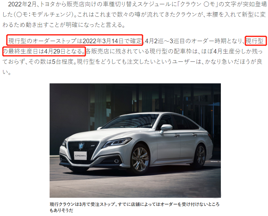 但很遗憾,纯进口方式引入的几率会相对较少。根据Best Car Web给出的消息表示,15代皇冠将于3 月 14 日之前停止下订,并于4月29日正式停止生产。