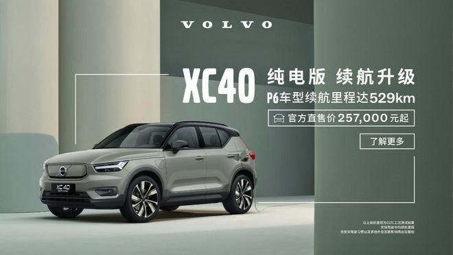 近日,买买君从沃尔沃汽车官方获得一组最新消息,沃尔沃XC 40 RECHARGE P6单电机版本正式上市,新车共推出两款车型,分别为智雅运动版以及智尊运动版,官方售价区间为25.7万元-27.6万元。相比P8版本四驱车型,P6版本在性能方面作出取舍,随即引来的是售价降低不少。