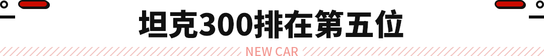排在第五的是坦克300,一款兼顾城市道路行驶和户外越野行驶的硬派SUV,从发布至今,它一直都是SUV市场的顶流,凭借硬派越野的风格、出色的性能、厚道的售价,预售首月订单就破万,随后几个月更是因为需求过大停售几次来扩张生产线,而等恢复销售后,依然供不应求。