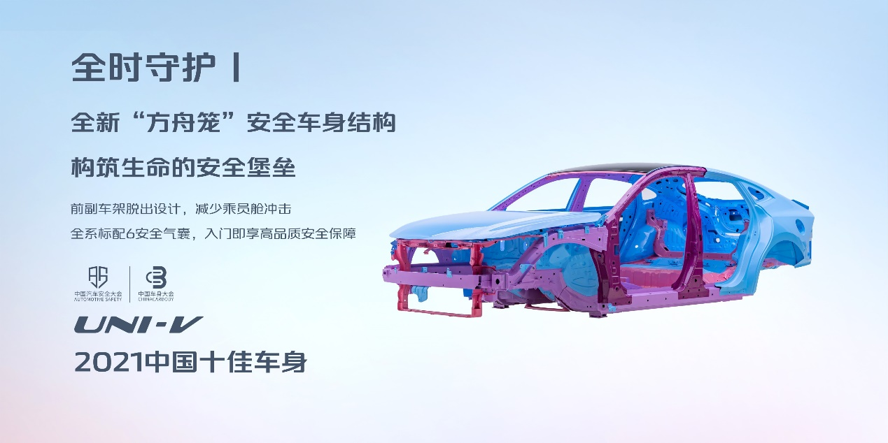 “方舟笼”车身,正是方舟架构技术的成果,在去年刚刚被评选为“中国十佳车身”,它具备低重心、高刚性、轻量化等特质。UNI-V表现出的优异操控性能,很大一部分原因都要归功于这副“方舟笼”车身。同时,“方舟笼”车身还凭借超70%高强度钢的使用,以及对车身吸能结构的优化和碰撞能量卸载的设计,为用户出行提供可靠的安全呵护。