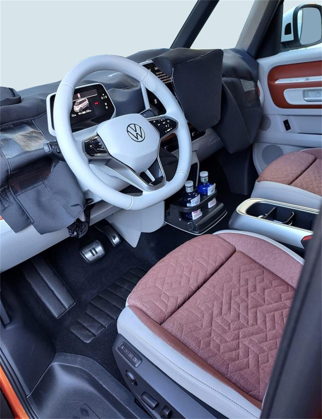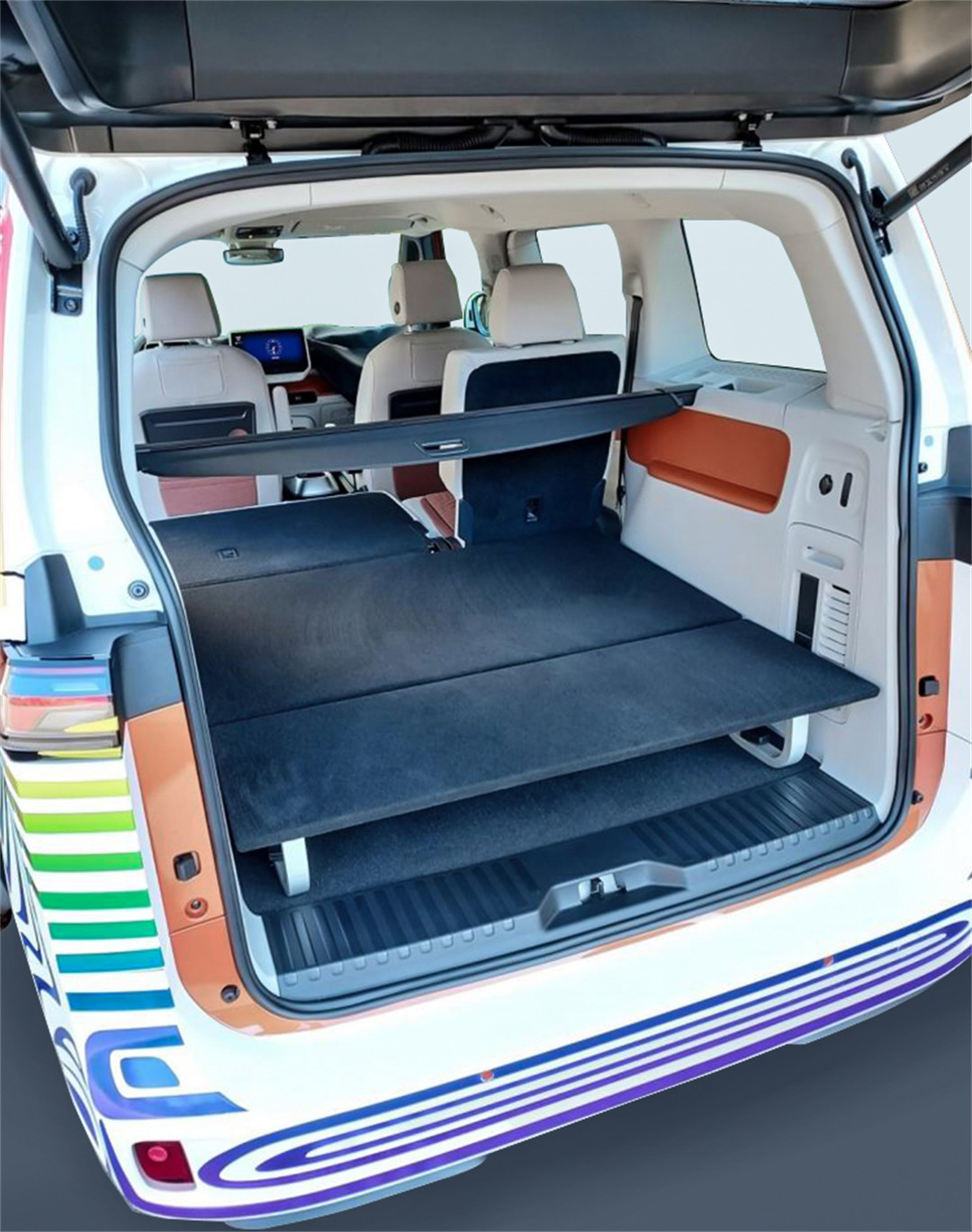 内饰与ID.家族的其他产品较为相似,前排提供三座椅设计,中间腿部空间完全贯通,座椅背部还有小桌板。厢货版的尾箱空间达到了3.9立方米,并采用对开门设计。