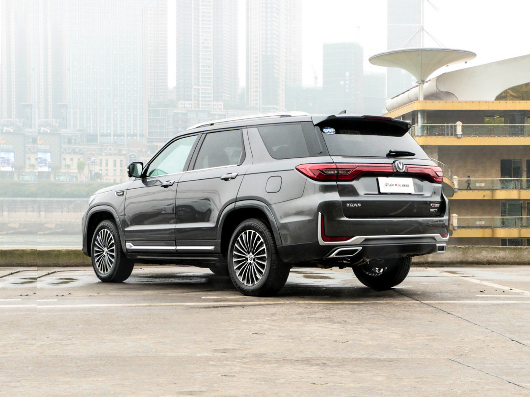 这个价位的中国SUV,大多采用硬派风格,长安CS95也不例外,但它的路线更接近美式SUV,主要依靠接近5米的车长和平直的线条营造出自身气场,特别是粗壮的C柱,辨识度极强。