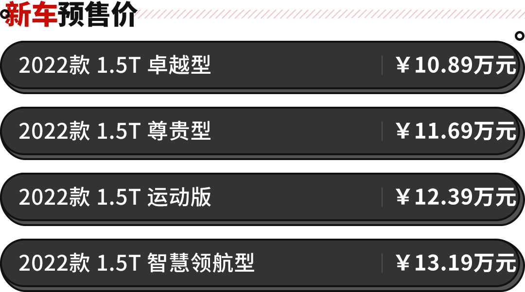 整体对比来看,预售价11.69万元的尊贵版车型性价比是最高的,也是最值得推荐的,基本该有的配置都有,同级别车型没有的它也有,像电动扰流板、大掀背后备尾门、18英寸轮毂等,都是很大的卖点。其次,推荐的最低配卓越型,预售价仅10.89万元,配置也十分齐全。