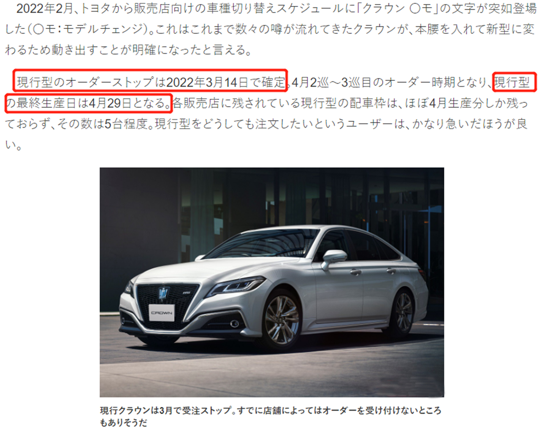 不过先别高兴得太早,因为根据资料显示,15代皇冠将于3 月14 日之前停止下订,并于4月29日正式停止生产。