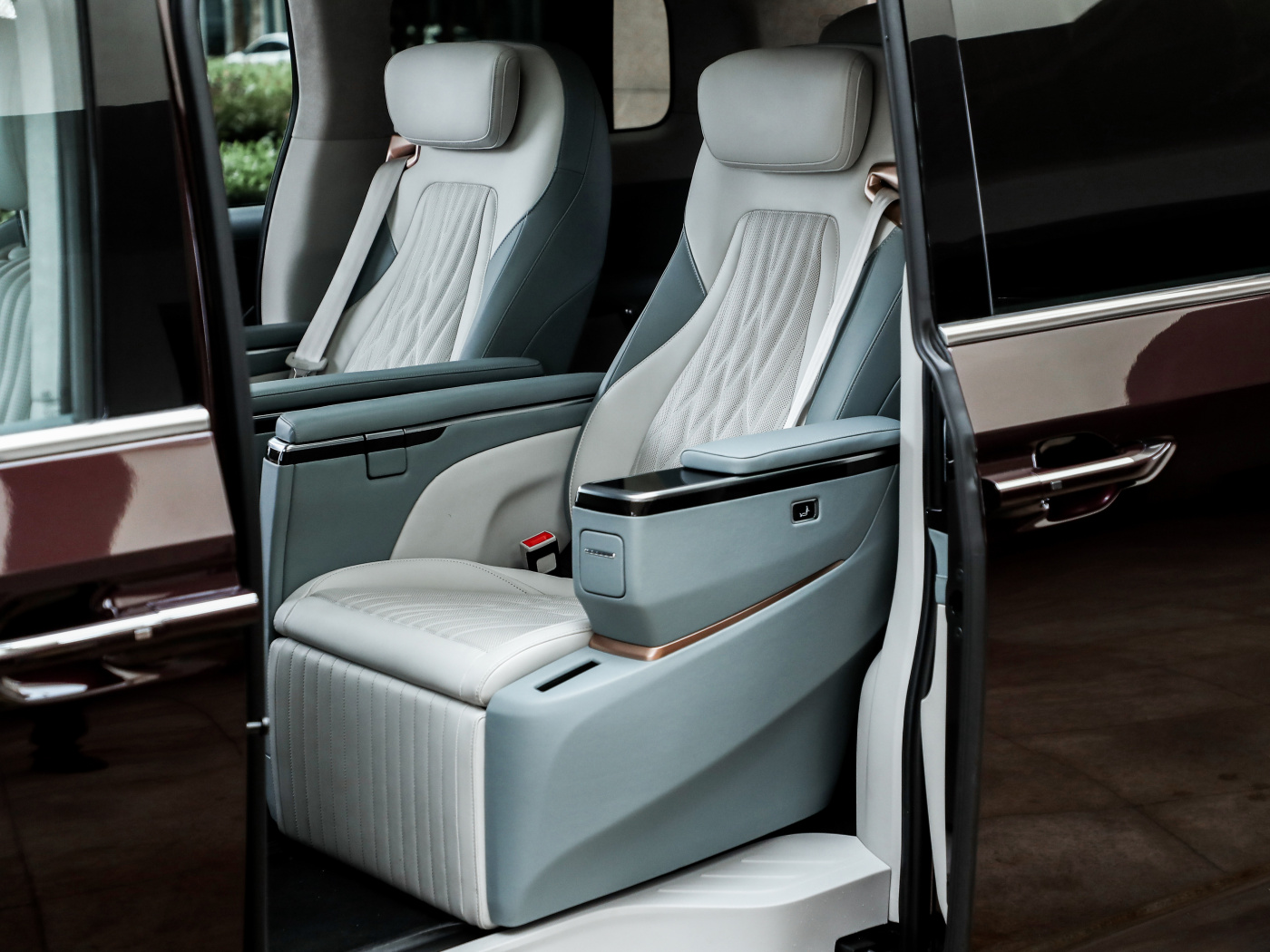 大通G90对于内饰座舱部分仅公布了一张二排独立座椅内饰官图。座椅采用高档皮质皮革用料覆盖,采用双色系搭配并辅以精致的缝线花纹设计突显出内饰座舱高端的驾乘风格。