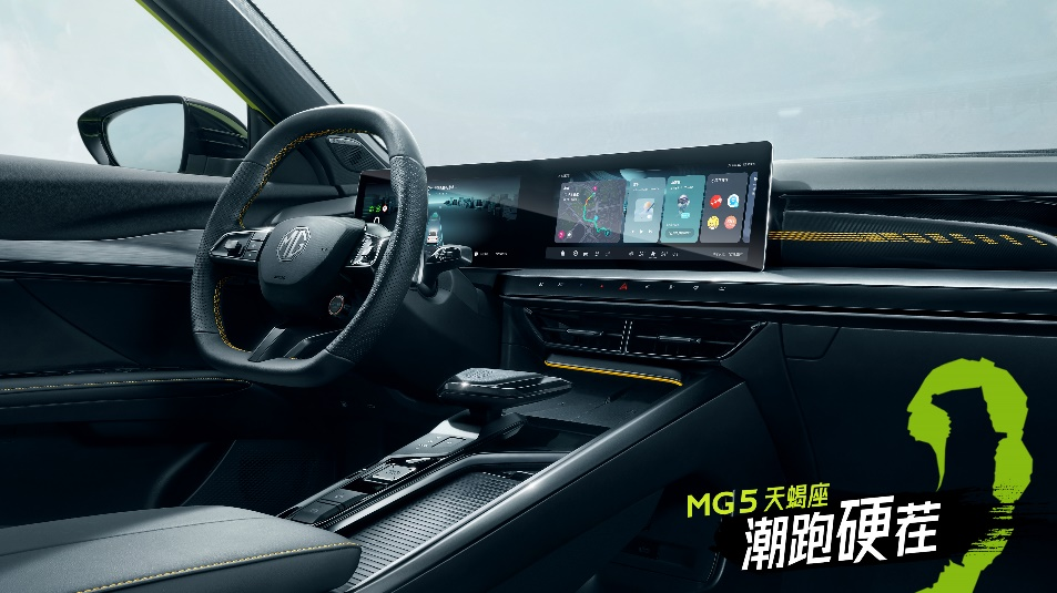 如果说天蝎座追求品质感与氛围感,那么MG5天蝎座则是将这两个元素全部“内化于心”。新车内饰覆盖件全面软化,打造更极致的操作手感;高亮黑、INS饰板、曜石黑铬等材质的应用,有效提升内饰的精致感;空调出风口暗藏于仪表台之中,与纤细的氛围灯交相辉映。