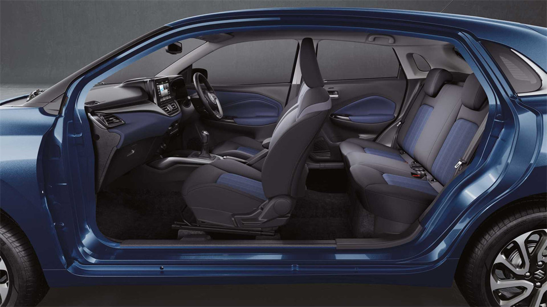 内饰方面,2022款的铃木Baleno将中控台的空调出风口位置进行下移,放在空调出风口上方位置加入了一个9英寸的中控屏幕,并且提供四种内饰可选,其中包括Sigma、Delta、Zeta以及Alpha作为高配内饰。