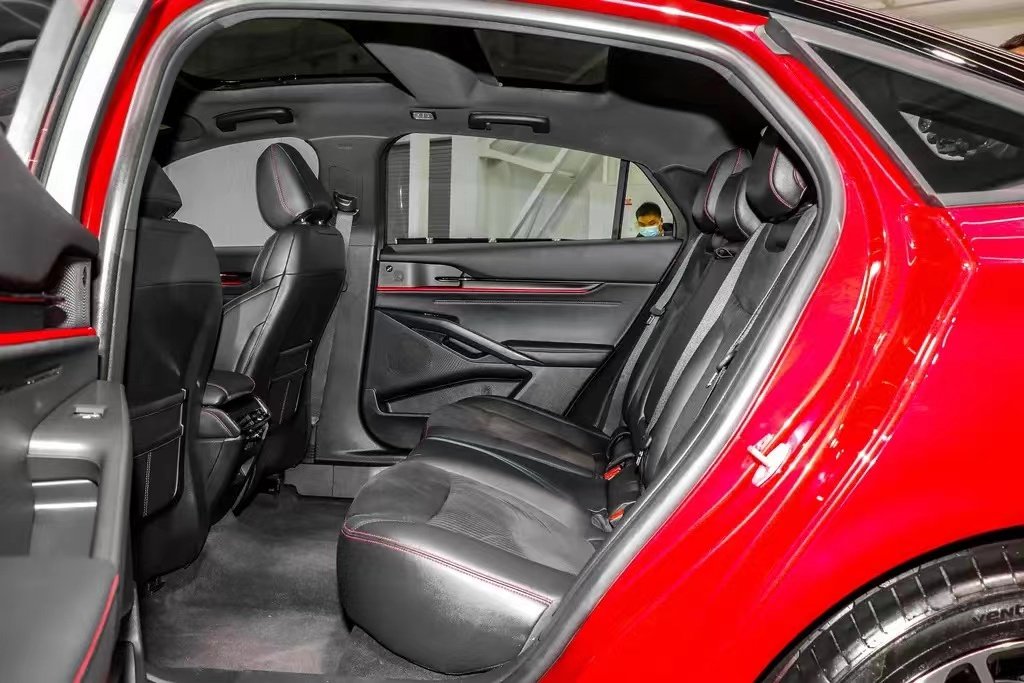 车尾部分,整体设计相对而言更为复杂,线条比较丰富凸显出一定层次感,同时尾灯也采用了时下最流行的贯穿式设计,契合当下的审美需求,至于好不好看就仁者见仁,不过确实给人眼前一亮的效果。另外,还配备了漆黑的小尾翼,以及黑化后的后包围,运动气息十足。