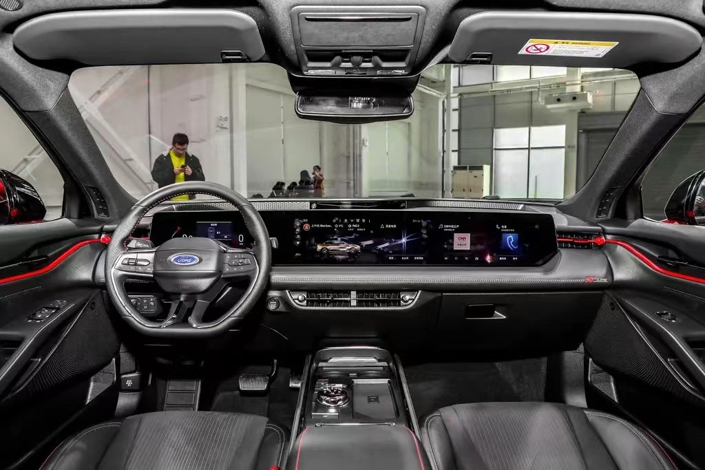 内饰方面,蒙迪欧ST-Line与普通版车型保持一致,配备了巨大的连体屏幕,长度达到1.1米,其中液晶仪表盘为12.3英寸,多媒体显示屏为27英寸,具有超强的视觉冲击力,造车新势力旗下车型看了都流泪。