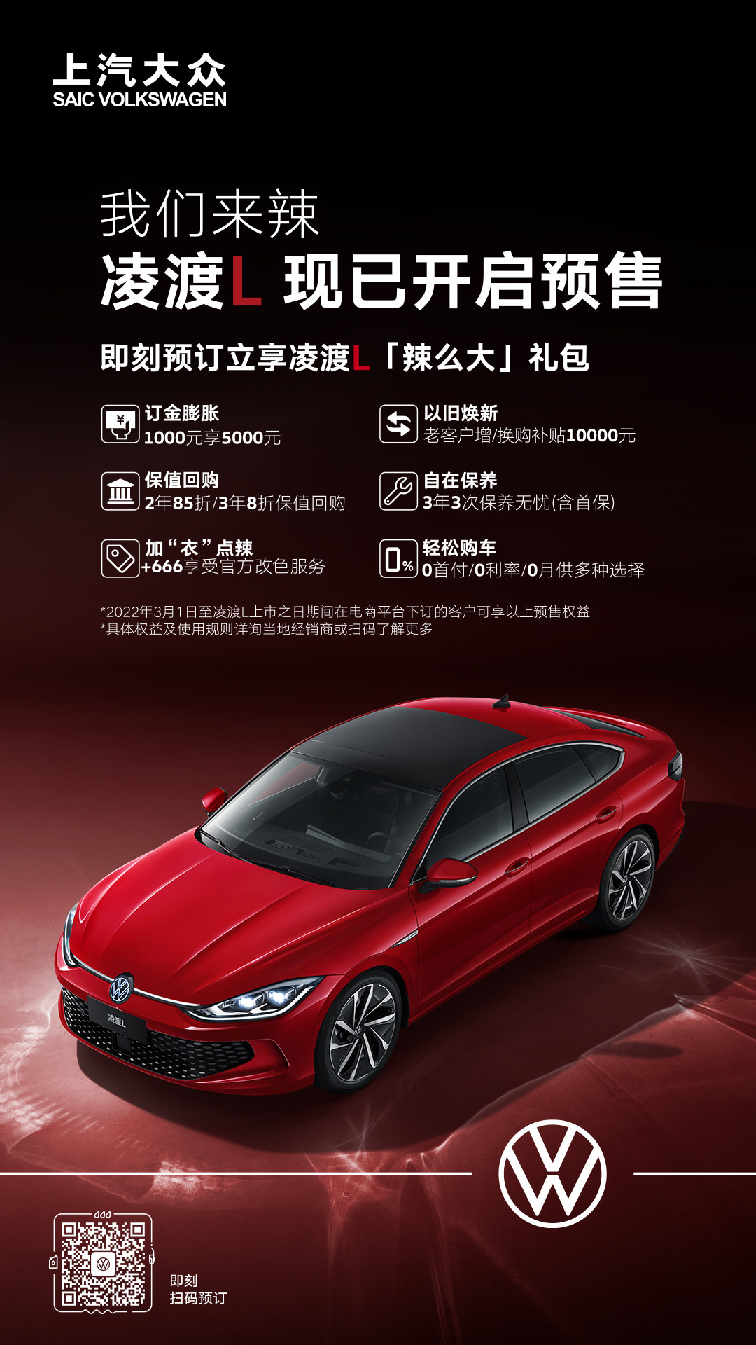 在凌渡L亮相一个月之后,于三月初正式开始了预售,虽未公布预售价,但根据产品定位,可以预测其价格在20万以内,而它在预售同时还给出了诸多重磅优惠,时间为3月1日至上市之日。