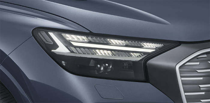 被众多国内消费者誉为“灯厂”的奥迪,怎么会在自己最擅长的地方让大家失望呢?奥迪Q4 e-tron与燃油车型不同,两侧矩阵式LED大灯组随即也作出相对应调整,采用分体式进行设计后,灯组不仅造型独特,点亮后视觉效果更为高级。
