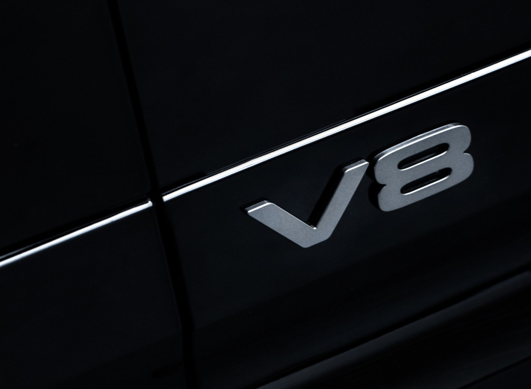 除了性能出色,外观方面也有很高的辨识度,采用了双边共四出排气布局,非常唬人,同时还配备了22英寸五辐式深灰色钻石切割铝合金轮毂、黑色制动卡钳,同时在侧裙位置还标有“V8”徽标,进一步强调身份感。